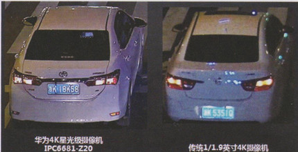 4K提供更高清晰度图像细节,但大部分4K设备采用较小靶面的感光元器件,使得更多像素被压缩到较小尺寸的感光元件上,使每个像素的感光度性能受到较大影响。受制于感光器件尺寸,低照度性能成为4K安防摄像机的主要挑战。得益于4,3英寸背照式感光器件,结合华为最新的图像处理芯片平台,黑夜里每个细节尽在掌握。